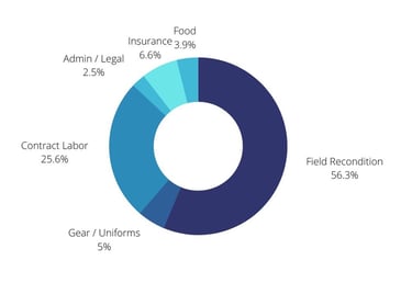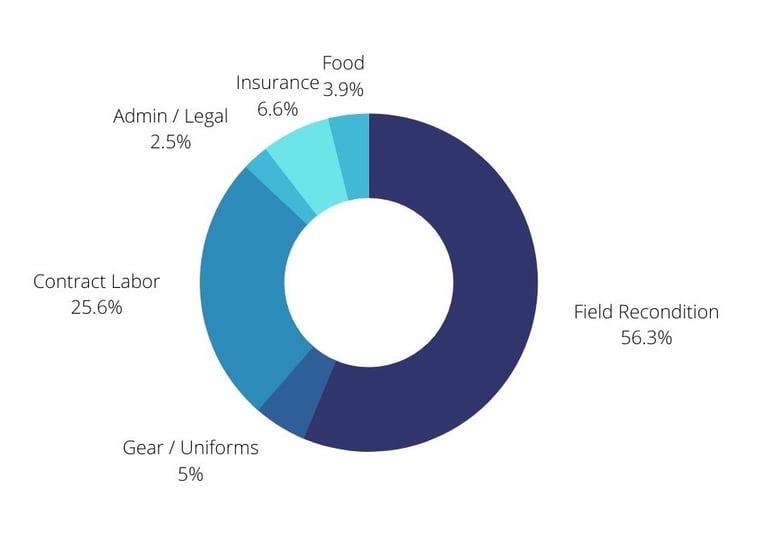 This total includes materials and labor to recondition the field, baseball gear, uniforms, food, back- to-school materials, program coordinators’ remuneration, and admin/legal/insurance costs.